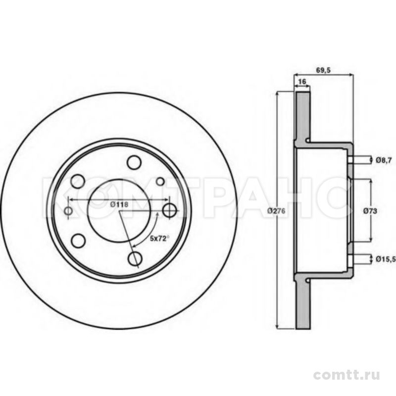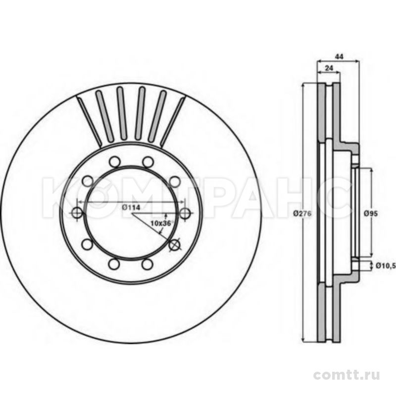 Диск тормозной RVI Midliner передний (ф276мм)