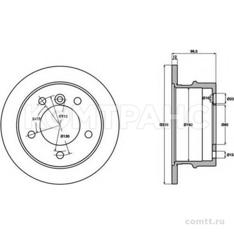 Диск тормозной IVECO Daily III передний (невентилируемый)